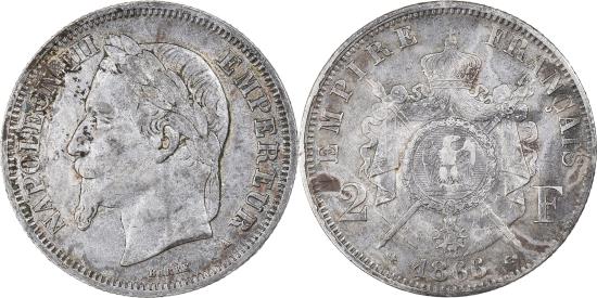 | | Coin, France, Napoleon III, 2 Francs, 1866, Paris, , Silver, KM:807.1 | | | Napoléon III, Laureate head left, Crowned and mantled arms divide denomination, NAPOLEON III EMPEREUR | | FEATURES |