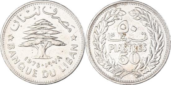 | Coin, Lebanon, 50 Piastres, 1978 |