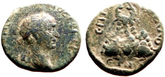 Trajan AE16 Cappadocia, Caesarea. Mt. Argaeus w. wreath