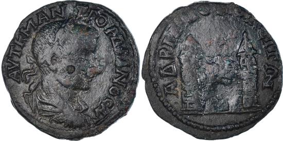 | | Coin, Thrace, Gordian III, Bronze Æ, 238-244, Hadrianopolis, , Bronze | | | Laureate, draped, and cuirassed bust right, City gate, flanked by two towers, AYT Κ M AΝΤ ΓOΡΔIANOC AVΓ, AΔΡIANOΠOΛEITΩN | | FEATURES |