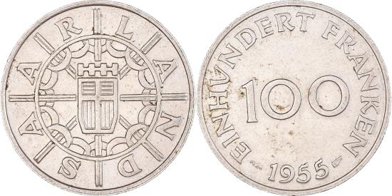 | | Coin, SAARLAND, 100 Franken, 1955, Paris, , Copper-nickel, KM:4 | | | Arms within circular design, Value and date | | FEATURES |