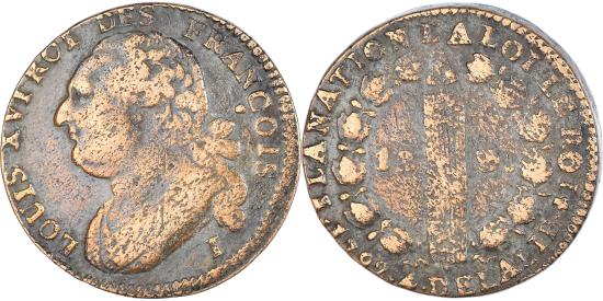 | | Coin, France, 12 deniers françois, 12 Deniers, 1792⸱4, Limoges, | | | 12 deniers françois | | FEATURES |