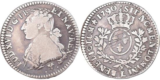 | | Coin, France, Louis XVI, 1/5 Écu aux branches d'olivier, 24 Sols, 1/5 ECU | | | Bust left, Crowned arms of France within branches | | FEATURES |