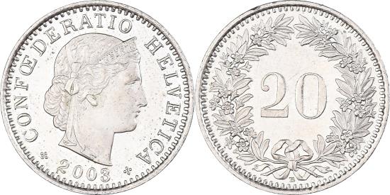 | Coin, Switzerland, 20 Rappen, 2003 |