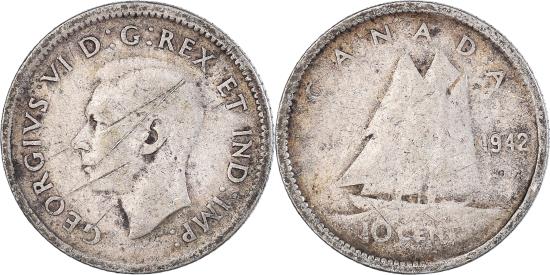 | Coin, Canada, 10 Cents, 1942 |