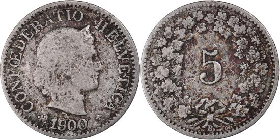 | Coin, Switzerland, 5 Rappen, 1900 |