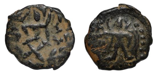 Kushan Empire. Huvishka. Circa AD 151-190. Æ half Unit. Baktria? mint, imitation