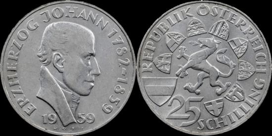 Austria 25 schilling 1959- 100th anniversary of the death of Archduke Johann