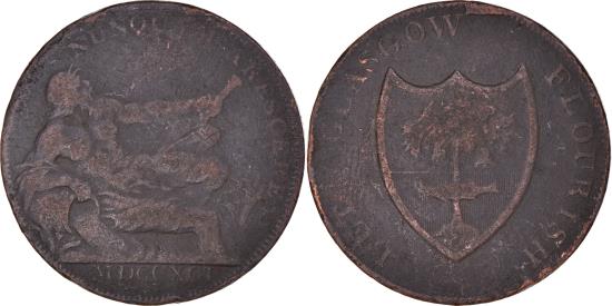 | | United Kingdom, Halfpenny Token, Lanarkshire - Glasgow / G. Shearer, 1791 | | | LET GLASGOW FLOURISH·, NUNQUAM ARESCERE / MDCCXCI, PAYABLE AT THE HOUSE OF GILBERT SHEARER & CO: | | FEATURES |
