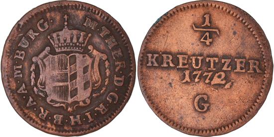 | Coin, AUSTRIAN STATES, BURGAU, Maria Theresa, 1/4 Kreuzer, 1772, Günzburg |