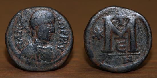 Byzantine Empire AE Follis, Anastasius (AD 491-518), Constantinople mint