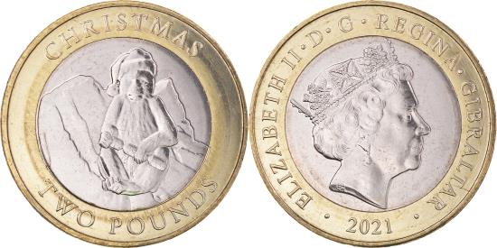 | Coin, Gibraltar, 2 Pounds, 2021, Christmas, , Bi-Metallic |