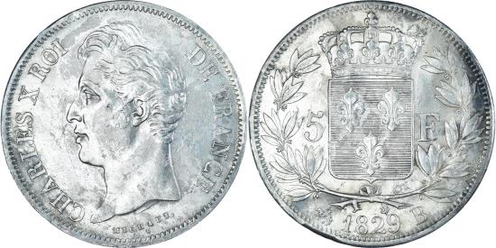 | | Coin, France, Charles X, 5 Francs, 1828, Rouen, , Silver, KM:728.2 | | | Charles X, Type II, Crowned arms divide denomination within wreath | | FEATURES |