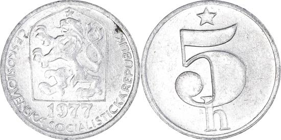 | Coin, Czechoslovakia, 5 Haleru, 1977 |