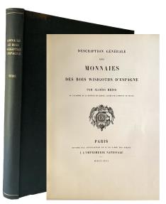 Description Générale des Monnaies des Rois Wisigoths d’Espagne by Aloïss Heiss, Paris, 1872, iii, 185 pages, 13 engraved plates, large quarto, later black cloth. Clean and Fine.