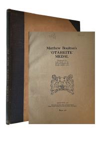Matthew Boulton’s “Otaheite” Medal distributed by Capt. Cook on his Second Voyage to the Pacific Ocean, 1772 Birmingham, 1926, 30 pages, illustrated throughout, quarter blue cloth and marbled boards, original card cover vound in. Fine.