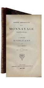 Notice Historique sur le Monnayage National et L’atelier d’Orléans by Camille Arnoult, Orleans, 1898, 174 pages. Quarter blue leather and marbled boards. Very Good
