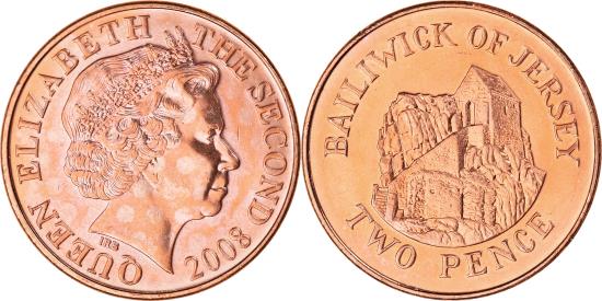 | | Coin, Jersey, Elizabeth II, 2 Pence, 2008, , Copper Plated Steel | | | Head with tiara right, L'Hermitage, St. Helier, Ian Rank-Broadley | | FEATURES |