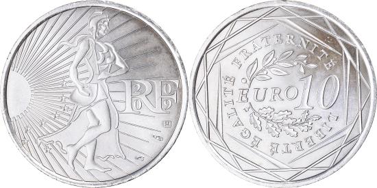 | | France, 10 Euro, 2009, , Silver, Gadoury:EU337, KM:1580 | | | Modernistic sower advancing right, Wreath and value | | FEATURES |