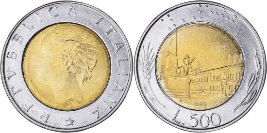 | | Coin, Italy, 500 Lire, 1995, Rome, , Bi-Metallic, KM:111 | | | Head left within circle, Plaza within circle flanked by sprigs | | FEATURES |