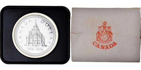 | | Coin, Canada, Elizabeth II, Parliament Library, Dollar, 1976, Royal Canadian | | | Young bust right, Library building, dates below, denomination above | | FEATURES |