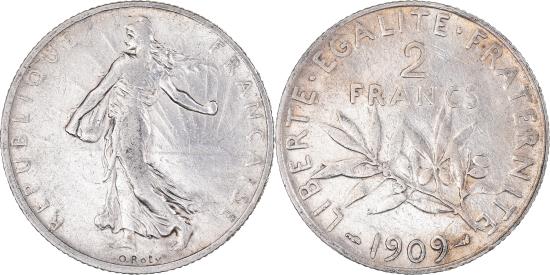 | | Coin, France, Semeuse, 2 Francs, 1909, Paris, , Silver, KM:845.1 | | | Semeuse, Figure sowing seed, Leafy branch divides denomination and date, Without mint mark. | | FEATURES |