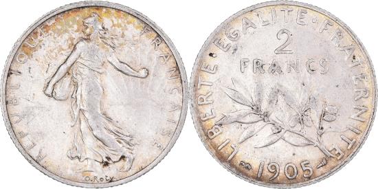 | | Coin, France, Semeuse, 2 Francs, 1905, Paris, , Silver, KM:845.1 | | | Semeuse, Figure sowing seed, Leafy branch divides denomination and date, Without mint mark. | | FEATURES |