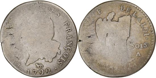 | | Coin, France, Louis XVI, 30 Sols, 1792, Paris, , Silver, KM:606.1 | | | 30 sols françois, Head left, Standing Genius writing the Constitution, LOUIS XVI ROI DES FRANCOIS | | FEATURES |