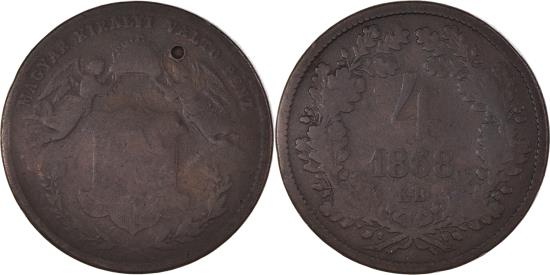 | | Coin, Hungary, Franz Joseph I, 4 Krajczar, 1868, Kremnitz, , Copper | | | Angels holding the crown arms of the Kingdom, Value, date within wreath, Wreath varieties exist. | | FEATURES |