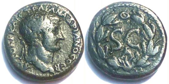 AYTOKP KAIC TPAIAN AΔPIANOC CЄB. Laureate head right.