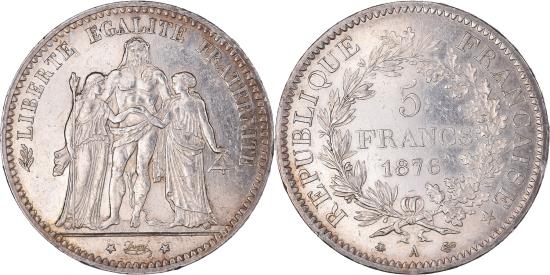 | Coin, France, Hercule, 5 Francs, 1876, Paris, , Silver, KM:820.1 |