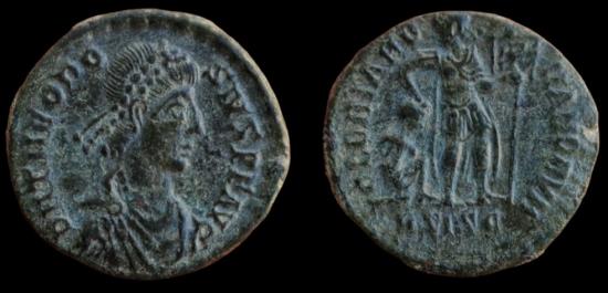 Theodosius I AE3. Siscia mint. 379-395 AD. Beautiful Green Patina. Extremely Fine.