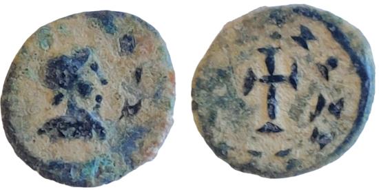 Vandals, under Gaiseric or Huneric, c. 5th- 6th century. Æ (9.1 mm, 0.43 g). Diademed, draped and cuirassed bust r. R/ Cross within pseudo-legend. BMC Vandals 182-94. Nice style