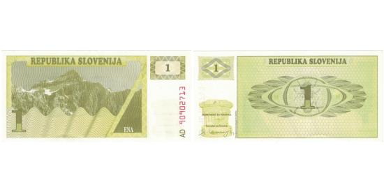 | | Banknote, Slovenia, 1 Tolar, 1990, 1990, KM:A1a, UNC(65-70) | | | Issued note., Plants at left, Dr. France Preseren at right., Slovenian Parliament., Note: reportedly 25,000 notes issued, of which more than 10,000 were distributed., Green. | | FEATURES |