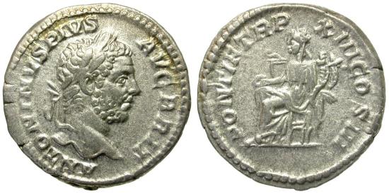 Title: Caracalla (AD 198-217) AR Denarius / Concordia