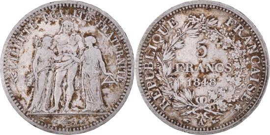| | Coin, France, Hercule, 5 Francs, 1848, Paris, , Silver, KM:756.1 | | | Hercule, Hercules group, Denomination within wreath | | FEATURES |