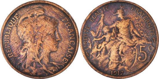 | | Coin, France, Dupuis, 5 Centimes, 1917, Paris, , Bronze, KM:842 | | | Dupuis, Liberty head right, Republic protecting her child, denomination at right, date below, Without mint mark. | | FEATURES |