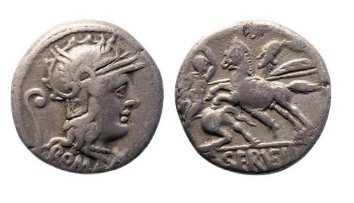 | Roman Republican silver denarius of Servilius Vatia. 127 BC, nice for type. |