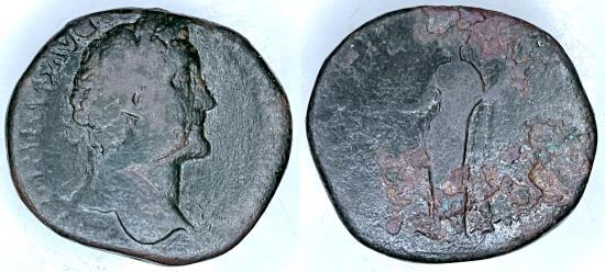 TCRIB-337, AE 32.59 gm 32 mm SESTERTIUS, Obv: ANTONINUS PIVS bust right, ANTONINUS AVG PIVS PP TRP COS III. REV: SALVS AVG SC, standing left feeding snake. 141-142 AD. RIC 635. a F