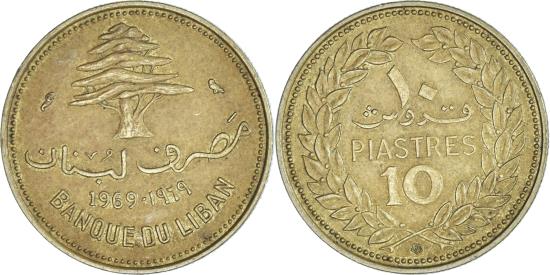 | Coin, Lebanon, 10 Piastres, 1969 |