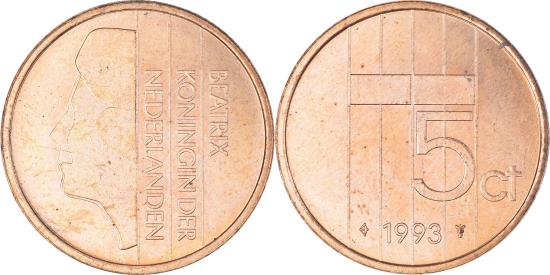 | Coin, Netherlands, Beatrix, 5 Cents, 1993, , Bronze, KM:202 |