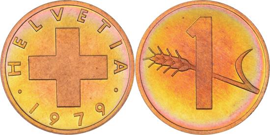 | | Coin, Switzerland, Rappen, 1979, Bern, Proof, , Bronze, KM:46 | | | Cross, Value and oat sprig | | FEATURES |