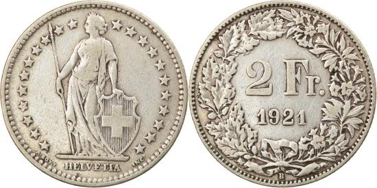 | | Coin, Switzerland, 2 Francs, 1921, Bern, , Silver, KM:21 | | | Standing Helvetia with lance and shield within star border, Value, date within wreath | | FEATURES |