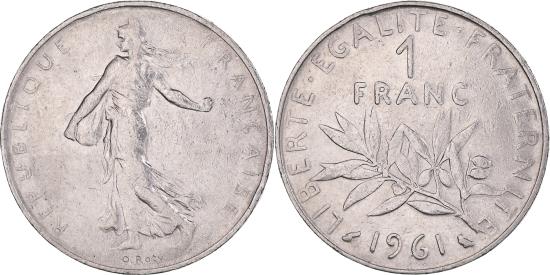 | | Coin, France, Semeuse, Franc, 1961, Paris, , Nickel, KM:925.1 | | | Semeuse, The Seed Sower, Laurel branch divides denomination and date, Without mint mark., Louis Oscar Roty | | FEATURES |