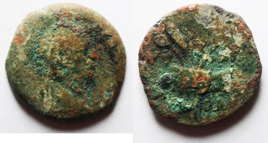 AS FOUND; EGYPT, Alexandria. Claudius. AD 41-54. Æ Obol . Dated RY 11 (AD 50/51)