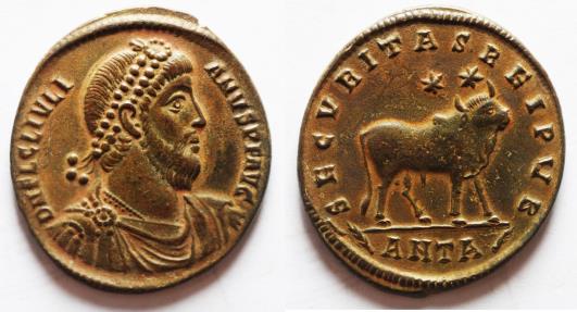 Julian II. AD 360-363. Æ Double Maiorina . Antioch mint. Bull