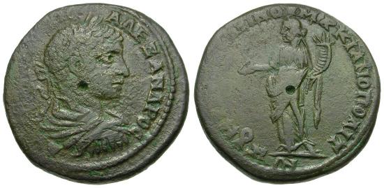 Title: Severus Alexander (AD 222-235). Moesia Inferior. Marcianopolis. Um Tereventinus, hegemon Æ25 / Homonoia
