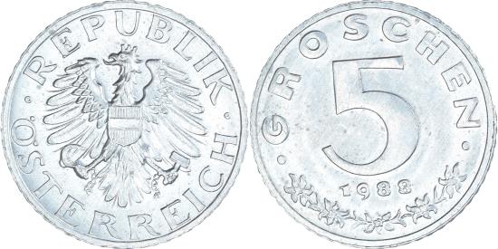 | | Coin, Austria, 5 Groschen, 1988 | | | FEATURES |