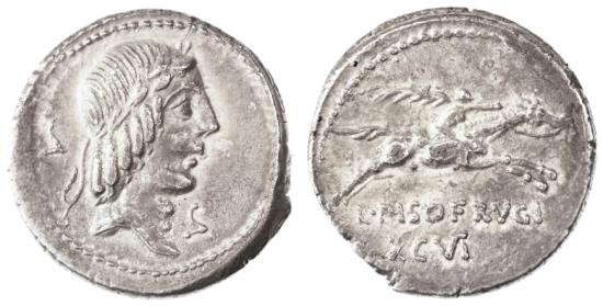 L. CALPURNIUS PISO FRUGI AR DENARIUS, CIRCA. 90 B.C.E.