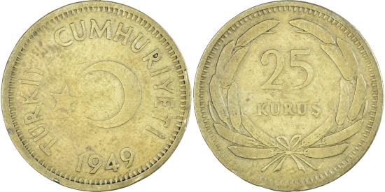 | | Coin, Turkey, 25 Kurush, 1949 | | | FEATURES |